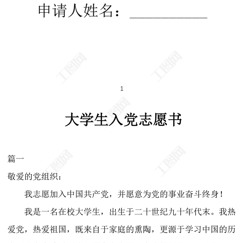 工圖網(wǎng)提供2021年大學(xué)生入黨志愿書模板范文供會員免費(fèi)下載。更多精彩黨課PPT素材,盡在工圖網(wǎng)。