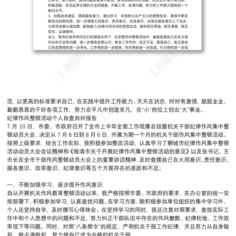 工圖網(wǎng)提供紀(jì)律作風(fēng)整頓活動(dòng)個(gè)人自查自糾報(bào)告供會(huì)員免費(fèi)下載。更多精彩黨課PPT素材,盡在工圖網(wǎng)。