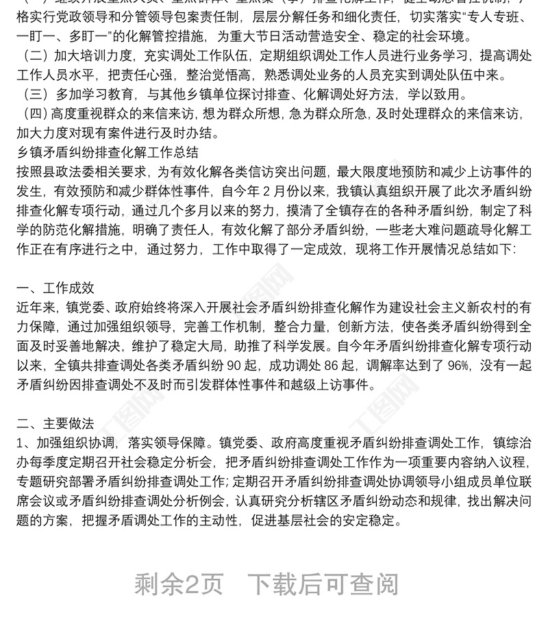 鄉(xiāng)鎮(zhèn)矛盾糾紛排查化解工作總結(jié) Array