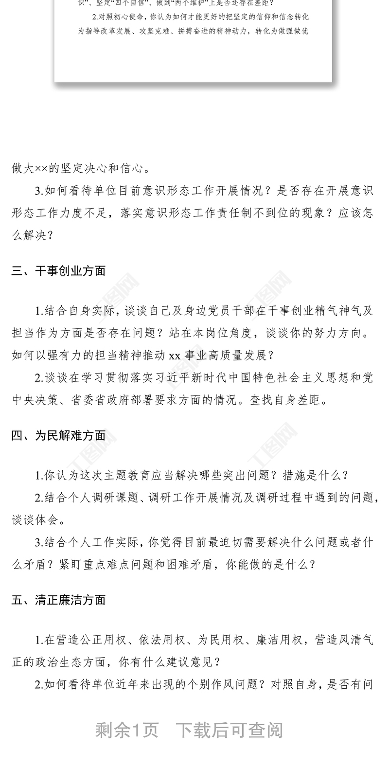 工圖網(wǎng)提供2021第二批“不忘初心、牢記使命”主題教育談心談話提綱供會員免費下載。更多精彩黨課PPT素材,盡在工圖網(wǎng)。