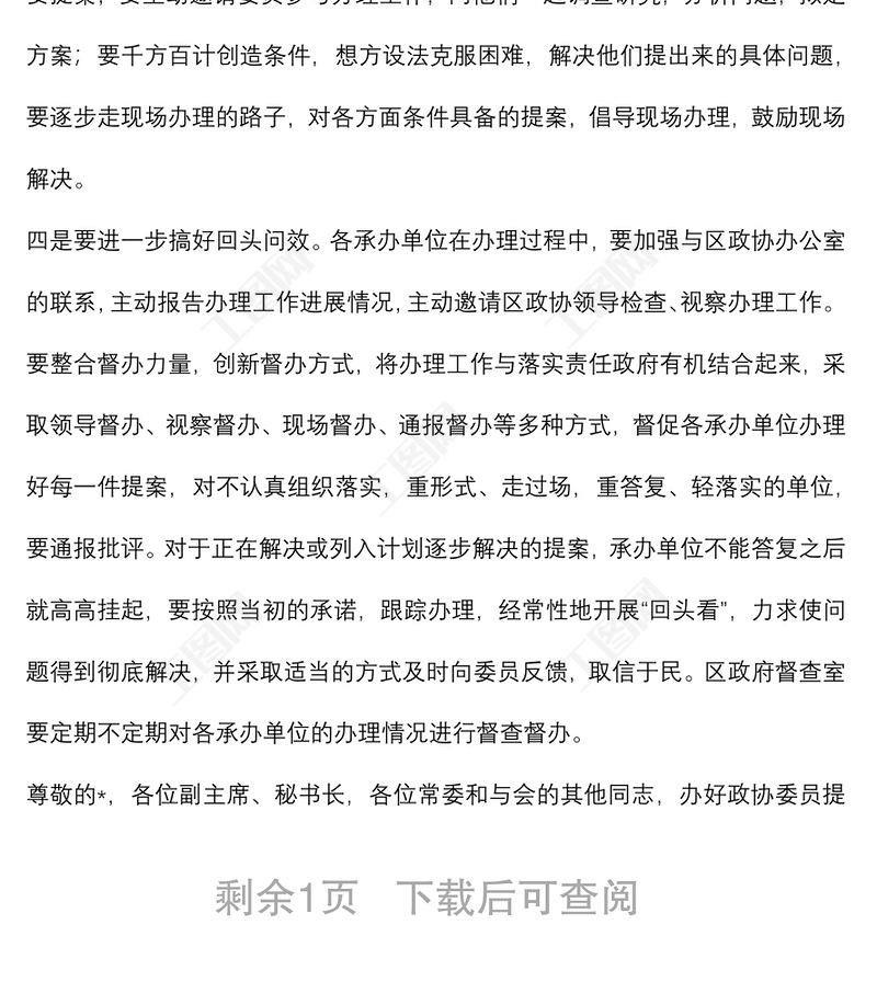 在區(qū)政協(xié)重點提案督辦工作會議上的講話