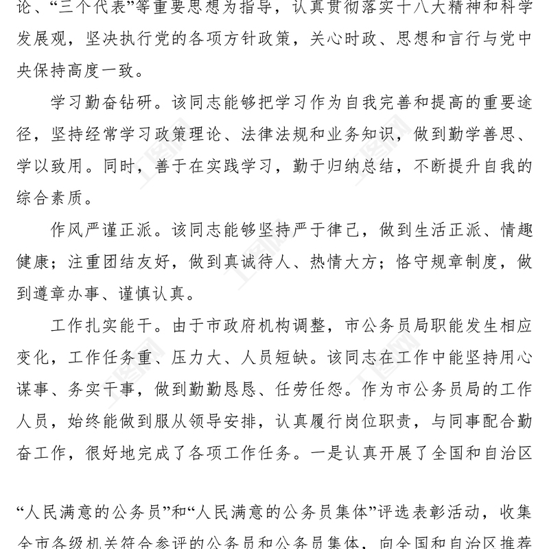 【公文模板】市公務(wù)員局某同志工作鑒定 Array