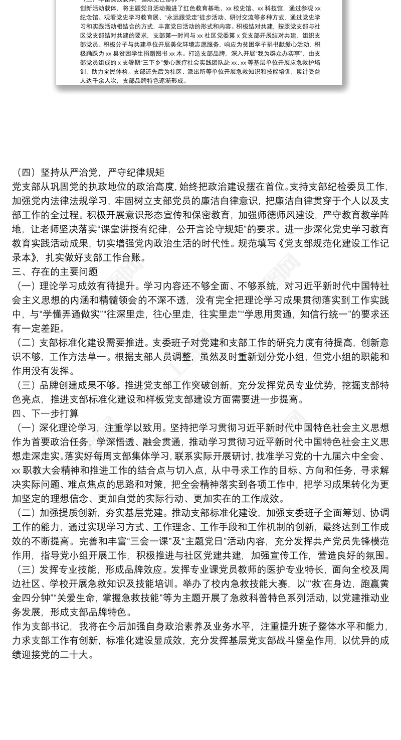 學(xué)校黨支部書記述職報(bào)告2022年最新2022抓黨建工作述職報(bào)告2022年學(xué)校黨支部書記黨課講稿2021學(xué)校組織生活會黨支部書記發(fā)言材料2022黨組織書記抓基層黨建工作問題整改方案2022融媒體中心黨建工作述職報(bào)告2022學(xué)校黨支部書記在黨員會議上的發(fā)言稿學(xué)校黨支部書記個(gè)人對照檢查材料2022村委會抓基層黨建工作述職報(bào)告2022年最新保險(xiǎn)公司黨建工作述職報(bào)告20222022圖書館黨建工作述職報(bào)告2022年人大黨建工作述職報(bào)告2021學(xué)校黨支部書記總結(jié)黨史學(xué)習(xí)教育2023抓基層黨建工作總結(jié)2023黨支部改選黨支部書記方案2023學(xué)校黨支部書記檢視