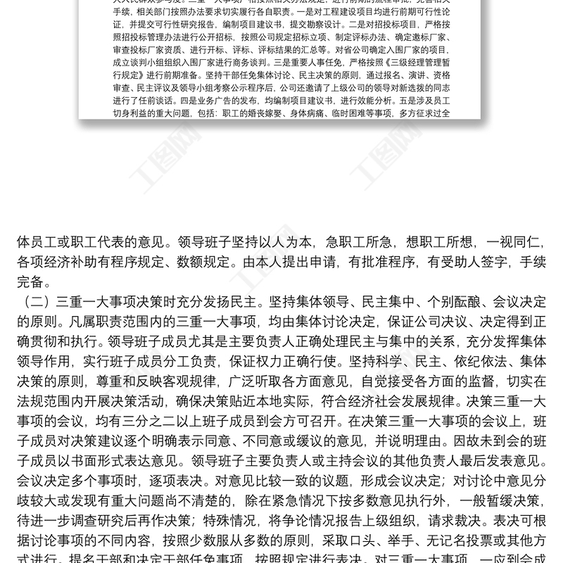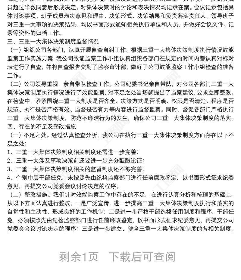 移動公司三重一大事項集體決策制度建設(shè)執(zhí)行監(jiān)督整改工作匯報