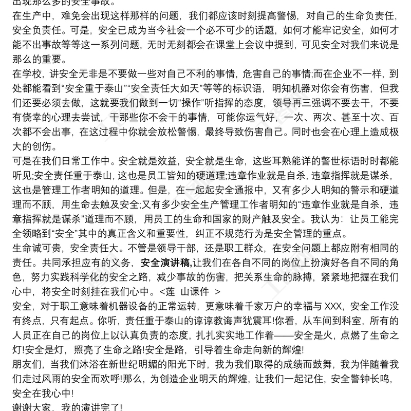 安全演講稿 優(yōu)秀篇安全演講稿 Array