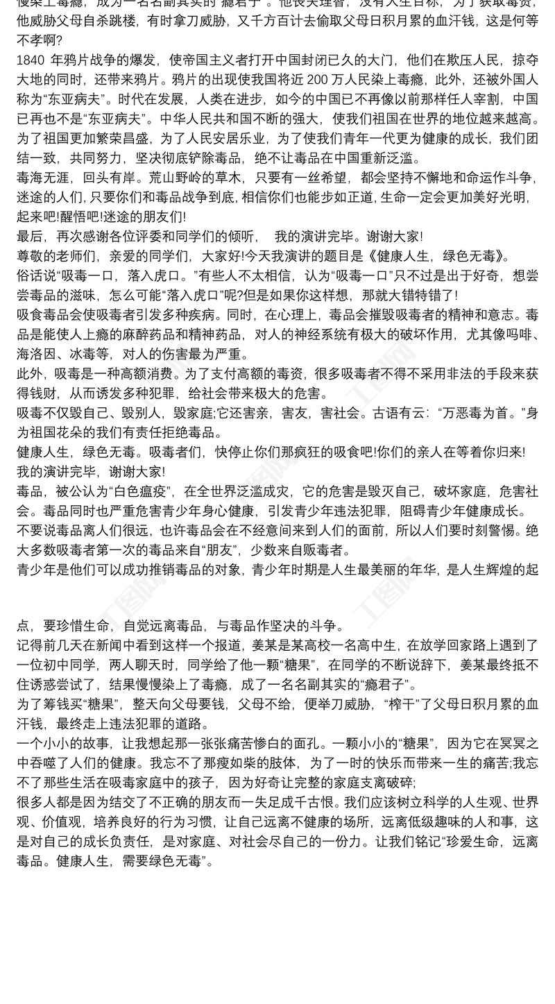 工圖網(wǎng)提供關(guān)于禁毒演講稿:“健康人生,綠色無毒”3篇供會(huì)員免費(fèi)下載。更多精彩黨課PPT素材,盡在工圖網(wǎng)。