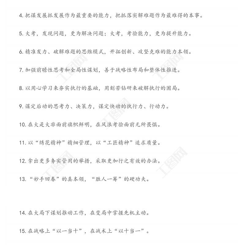 工圖網(wǎng)提供“最重要的能力”“最難得的本事”:能力素質(zhì)類過渡句50例供會員免費下載。更多精彩黨課PPT素材,盡在工圖網(wǎng)。