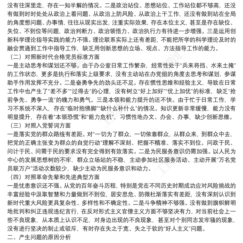 > 對(duì)照檢查 > 辦公室黨員干部2021年度組織生活會(huì)對(duì)照檢查材料(四個(gè)方面).DOCX 【圖片、文字、動(dòng)畫(huà)均可編輯】