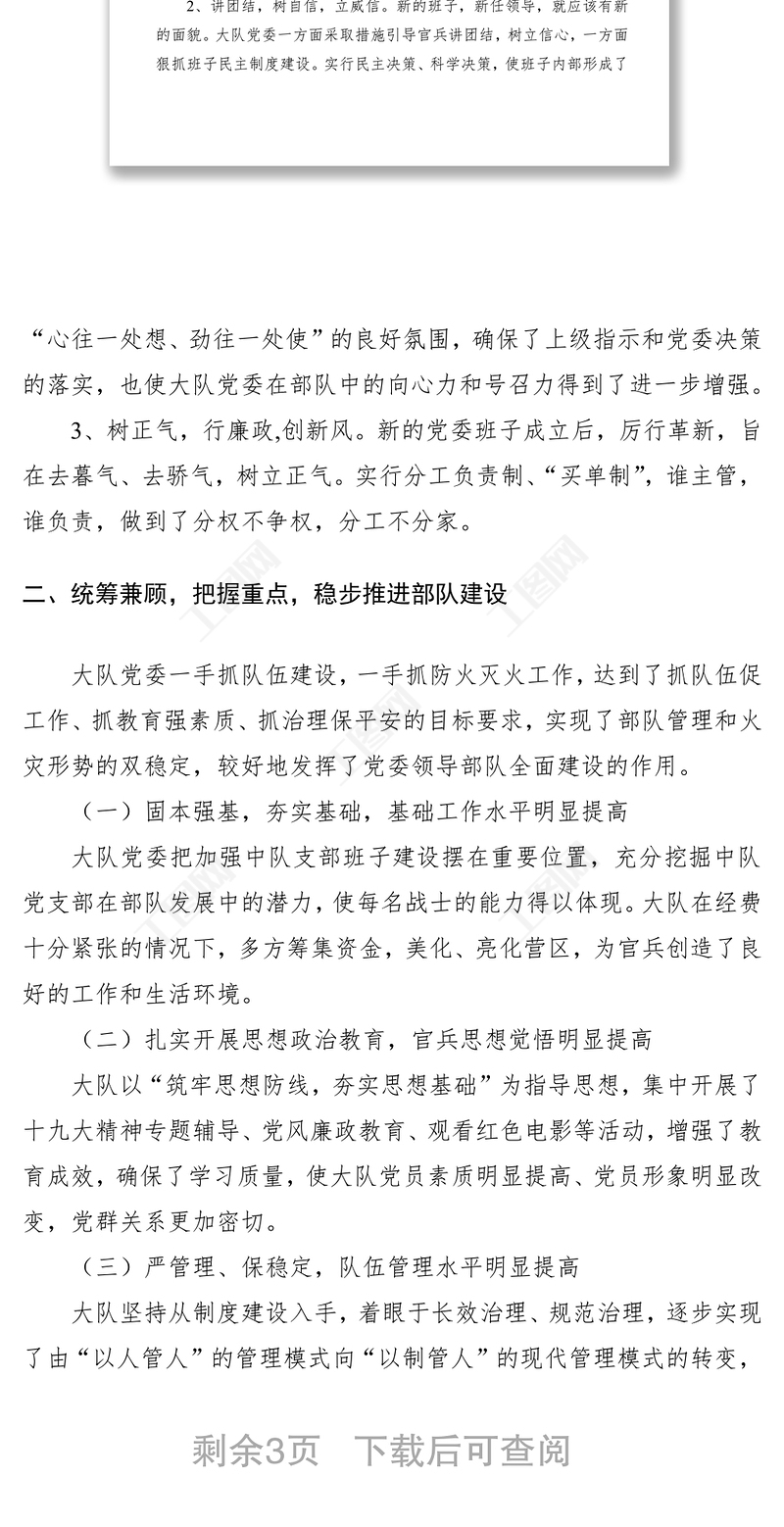 工圖網(wǎng)提供2021消防大隊黨委班子述職報報告范文(消防述職)供會員免費下載。更多精彩黨課PPT素材,盡在工圖網(wǎng)。