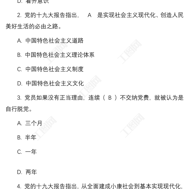 工圖網(wǎng)提供2021【入黨培訓(xùn)試題】入黨積極分子發(fā)展對(duì)象結(jié)業(yè)考試測(cè)試題含答案供會(huì)員免費(fèi)下載。更多精彩黨課PPT素材,盡在工圖網(wǎng)。
