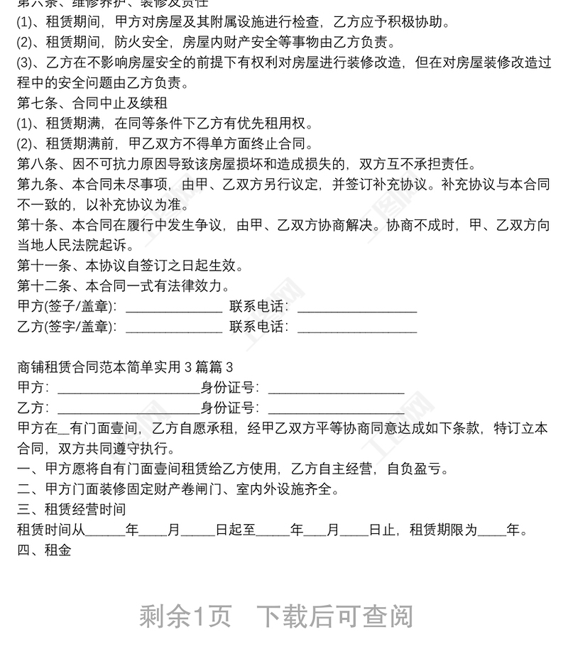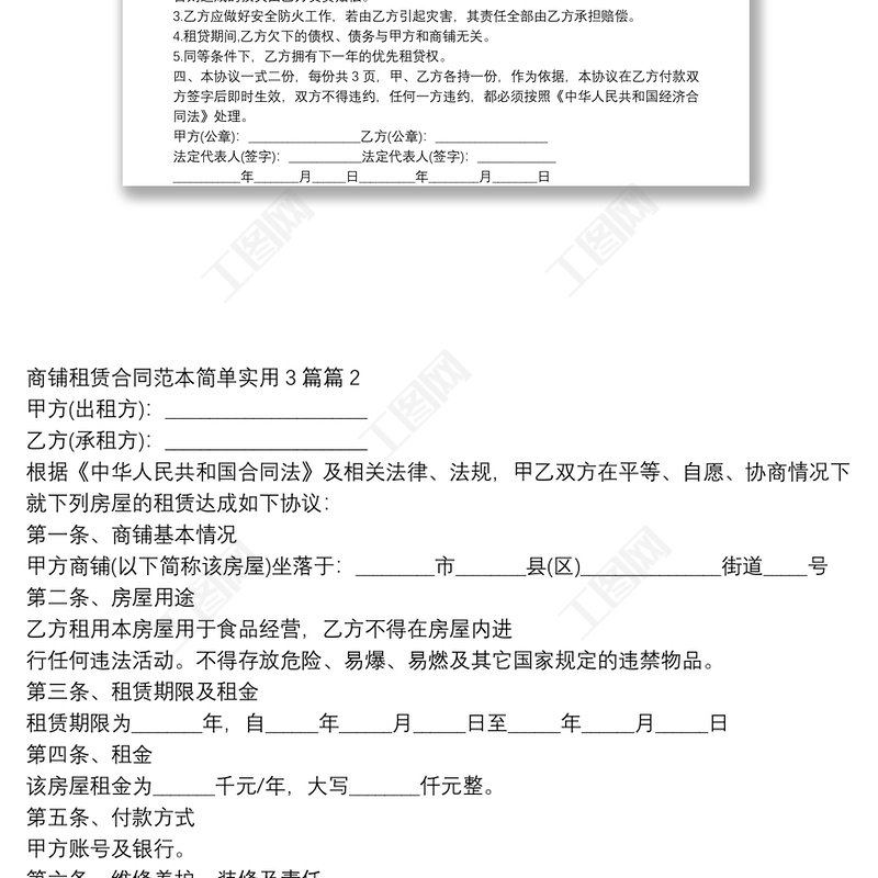 工圖網(wǎng)提供商鋪?zhàn)赓U合同范本簡(jiǎn)單實(shí)用3篇3篇供會(huì)員免費(fèi)下載。更多精彩黨課PPT素材,盡在工圖網(wǎng)。