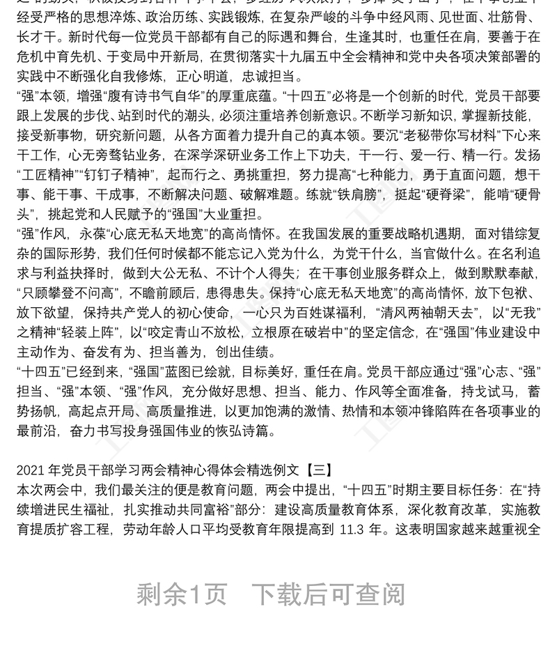工圖網(wǎng)提供2021年黨員干部學(xué)習(xí)兩會精神心得體會精選例文供會員免費下載。更多精彩黨課PPT素材,盡在工圖網(wǎng)。
