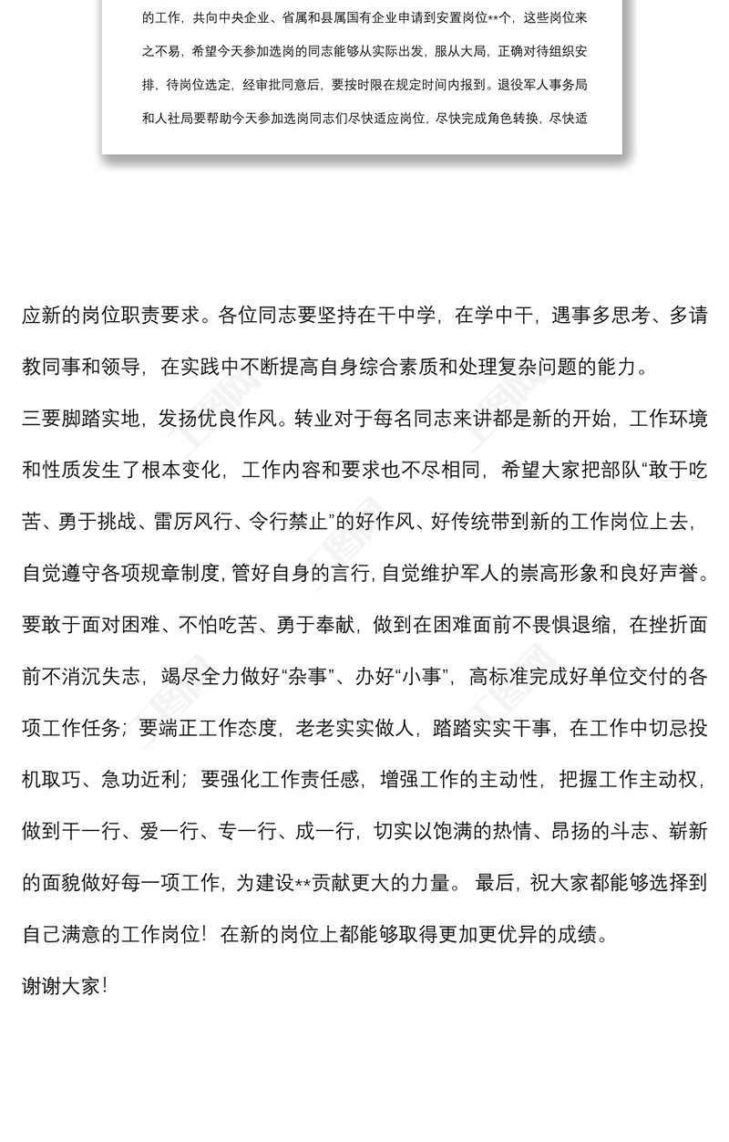 在某縣退役士官安置選崗儀式上的講話 Array