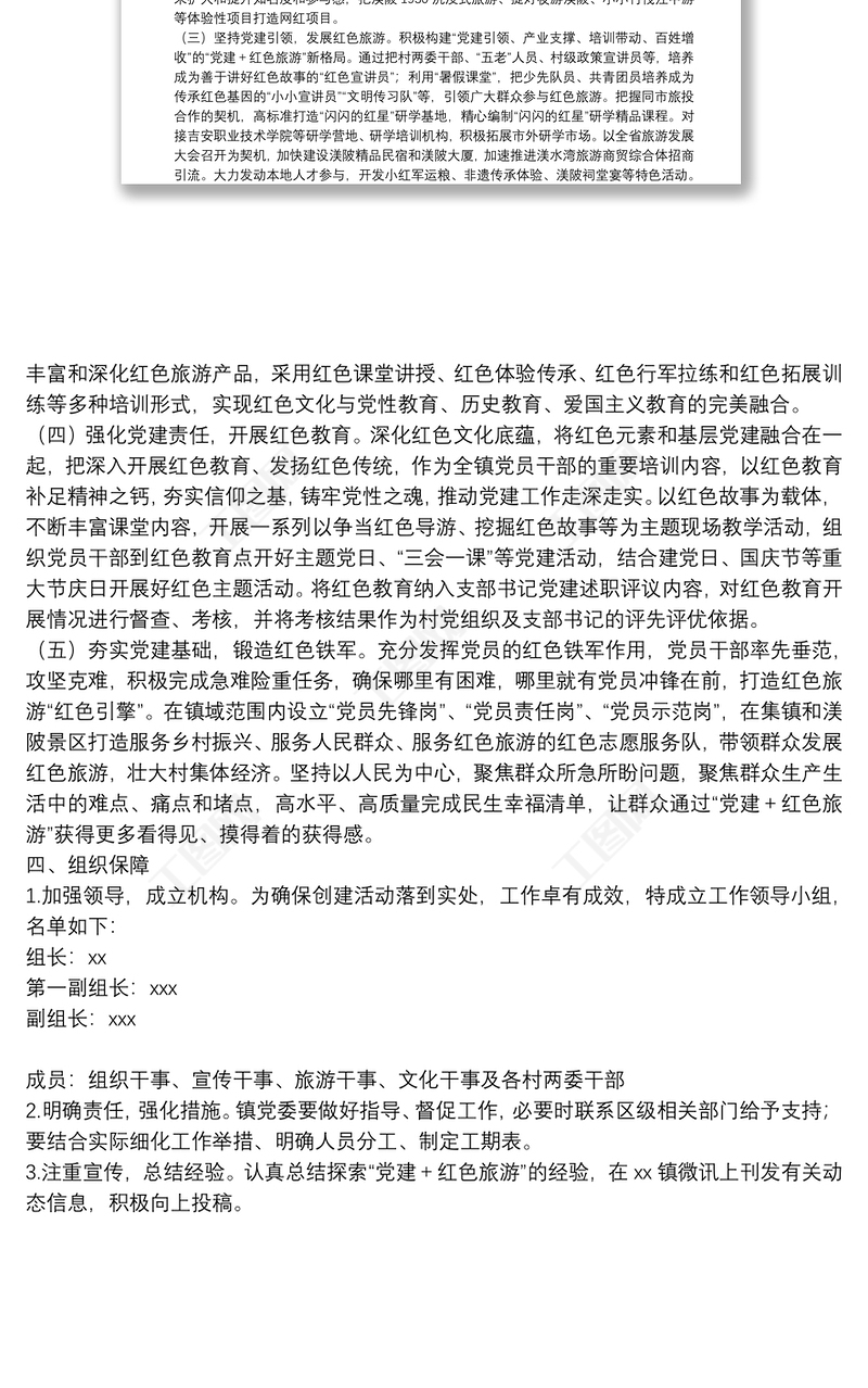 XX鎮(zhèn)探索“黨建+紅色旅游”實(shí)施方案