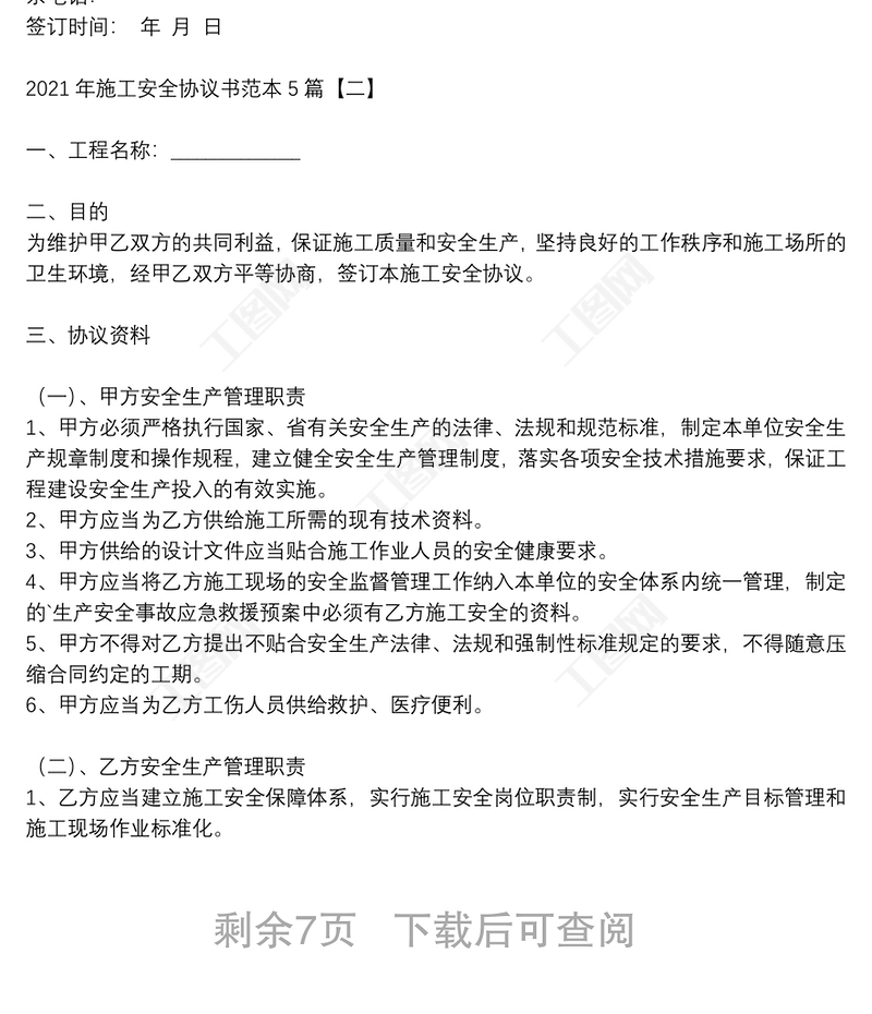 工圖網(wǎng)提供2021年施工安全協(xié)議書范本5篇供會(huì)員免費(fèi)下載。更多精彩黨課PPT素材,盡在工圖網(wǎng)。