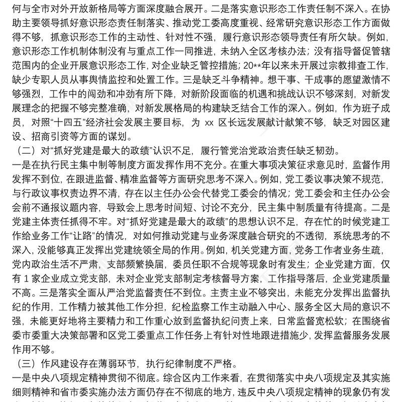 2022巡察整改專題民主生活會(huì)領(lǐng)導(dǎo)班子對(duì)照檢查材料2022年巡察整改專題民主生活會(huì)對(duì)照檢查材料剖析模板2022巡察整改專題民主生活會(huì)個(gè)人材料2021黨支部組織生活會(huì)對(duì)照檢查材料和整改方案2021一案一整改專題民主生活會(huì)對(duì)照檢查材料2021民主生活會(huì)黨支部班子對(duì)照檢查材料2021檢察隊(duì)伍教育整頓組織生活會(huì)對(duì)照檢查材料2022年度巡察整改專題民主生活會(huì)班子對(duì)照檢查材料2021市委巡察整改專題民主生活會(huì)方案2022市委巡察整改專題民主生活會(huì)實(shí)施方案2022巡察整改專題民主生活會(huì)要談心談話記錄2022縣教育局局長(zhǎng)巡察整改專題民主生活會(huì)檢視剖析材料2022巡察整改專題民主生活會(huì)黨委書(shū)記對(duì)照檢查材料2022巡察整改專題民主生活會(huì)會(huì)前談心談話提綱2021派駐紀(jì)檢監(jiān)察組組長(zhǎng)組織生活會(huì)對(duì)照檢查材料2022巡察整改專題民主生活會(huì)黨組書(shū)記個(gè)人對(duì)照檢查材料