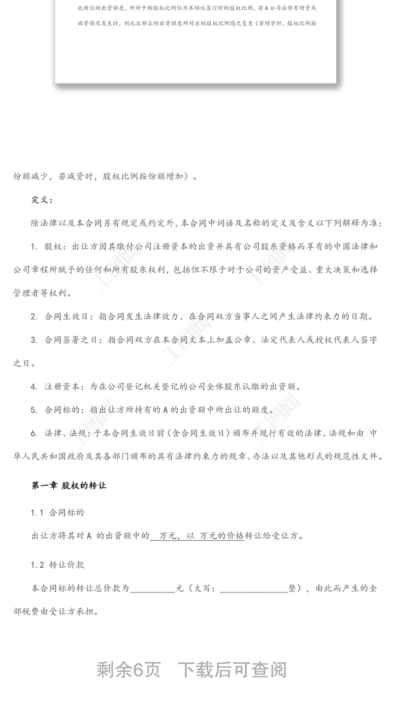 公司股權(quán)轉(zhuǎn)讓協(xié)議范本包含