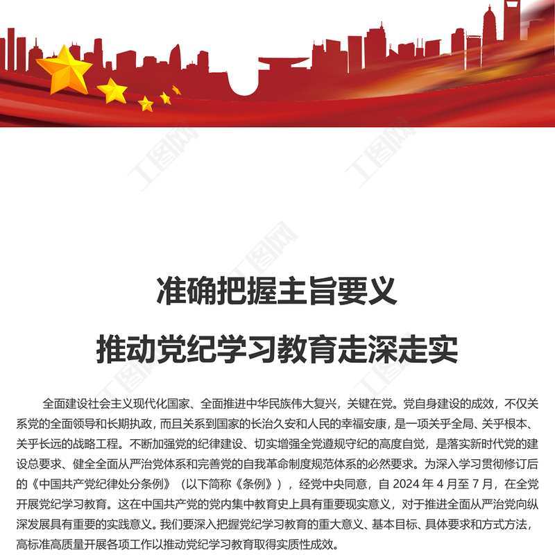 工圖網(wǎng)提供準確把握主旨要義推動黨紀學習教育走深走實PPT簡約風全黨開展黨紀學習教育工作課件模板(講稿)供會員免費下載。更多精彩黨課PPT素材,盡在工圖網(wǎng)。