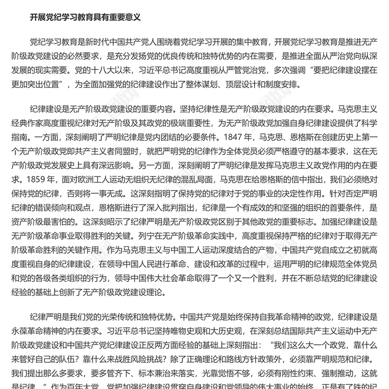 黨課講稿 > 準確把握主旨要義推動黨紀學習教育走深走實PPT簡約風全黨開展黨紀學習教育工作課件模板(講稿).DOCX