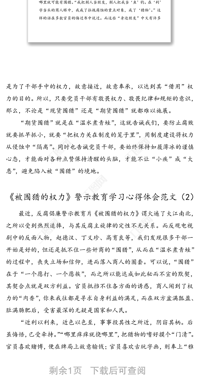 2篇被圍獵的權(quán)力警示教育學習心得體會范文,心得體會,公文范文 Array
