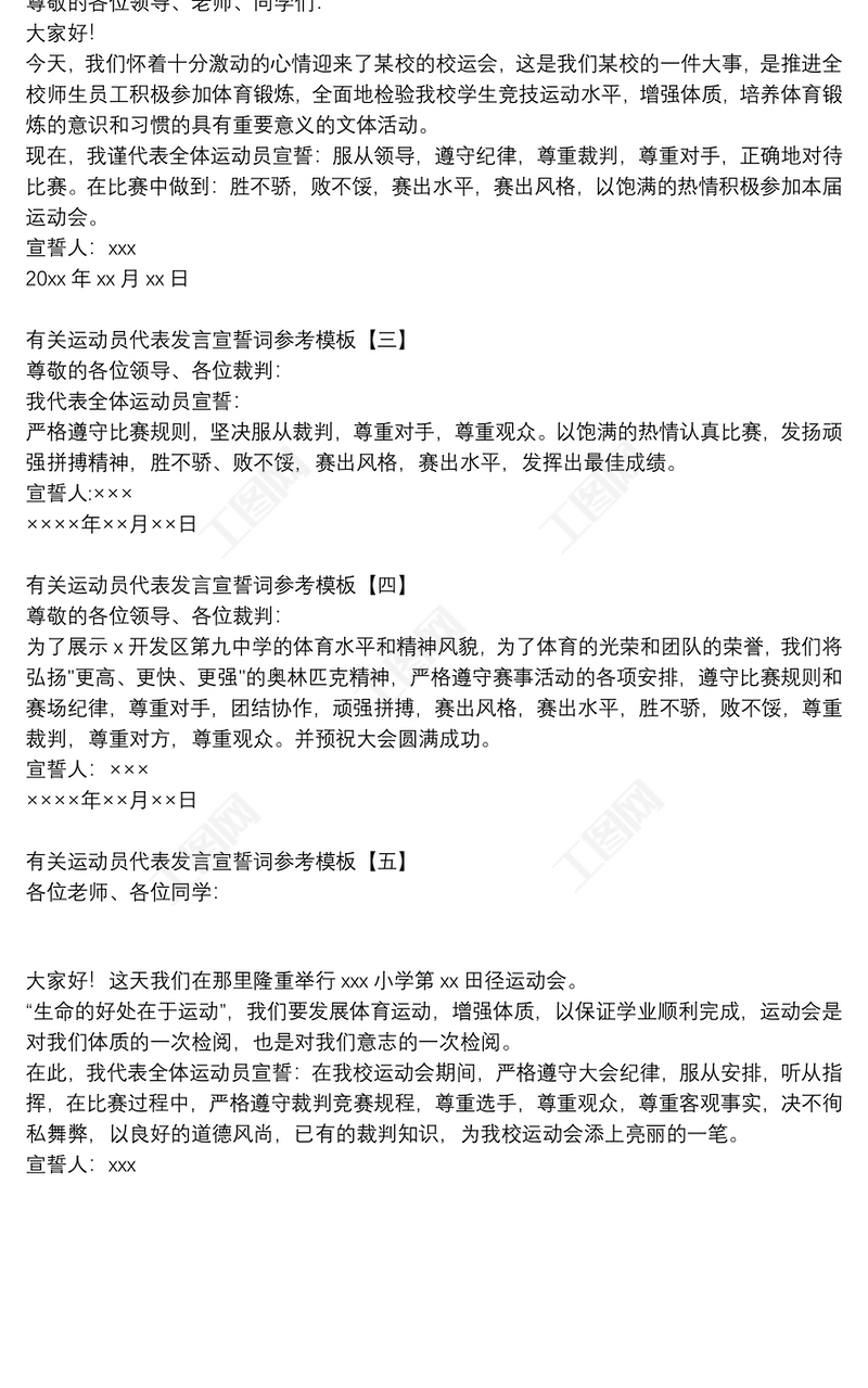 有關(guān)運(yùn)動(dòng)員代表發(fā)言宣誓詞參考模板 Array