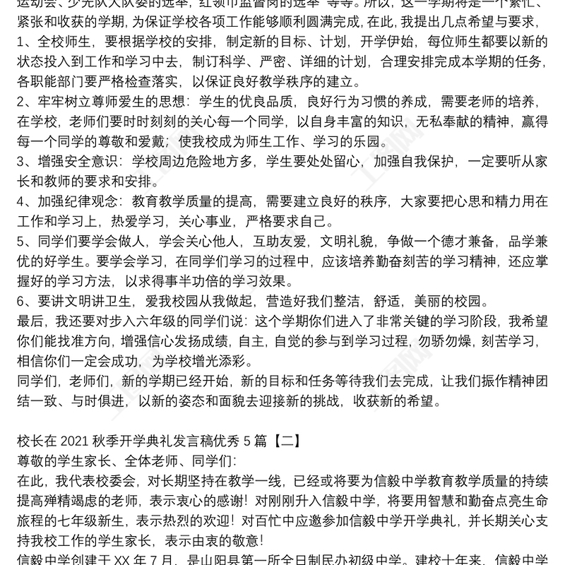校長在2021秋季開學(xué)典禮發(fā)言稿優(yōu)秀5篇 Array