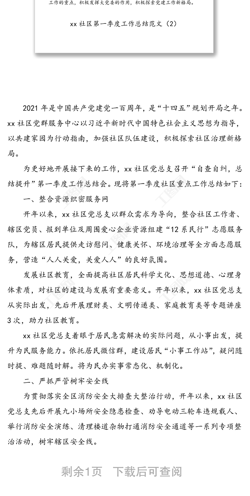 工圖網(wǎng)提供2篇2021年第一季度工作總結(jié)黨建工作匯報(bào)2篇工作總結(jié)匯報(bào)報(bào)告供會(huì)員免費(fèi)下載。更多精彩黨課PPT素材,盡在工圖網(wǎng)。