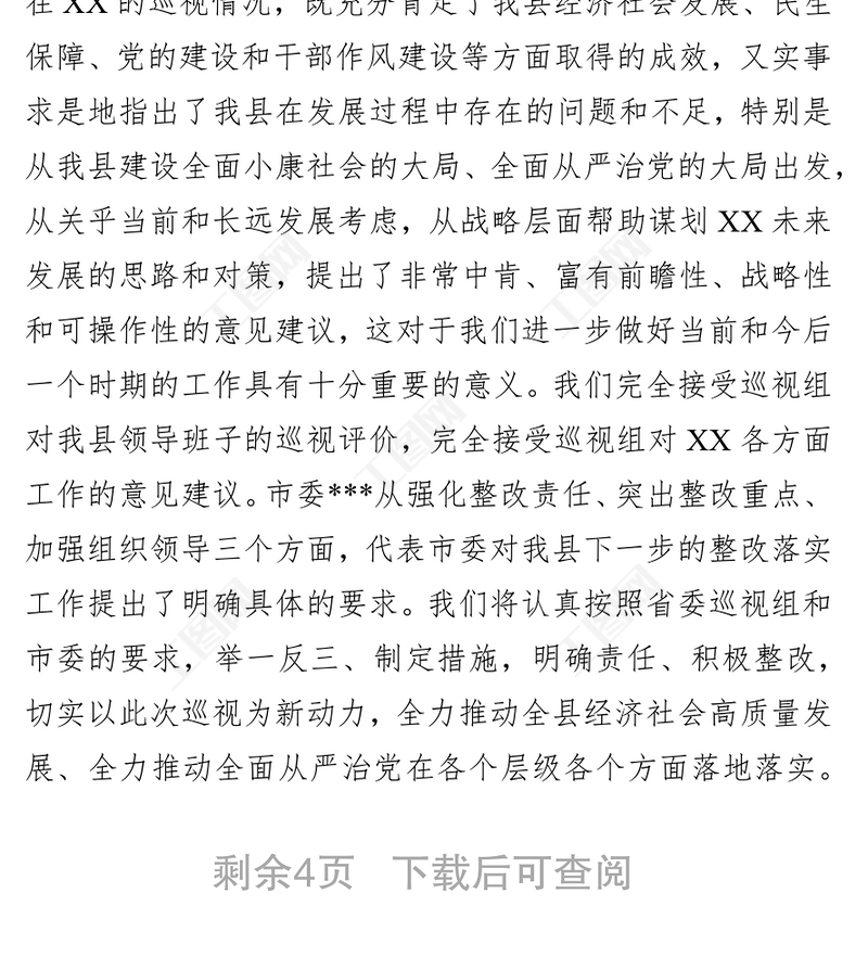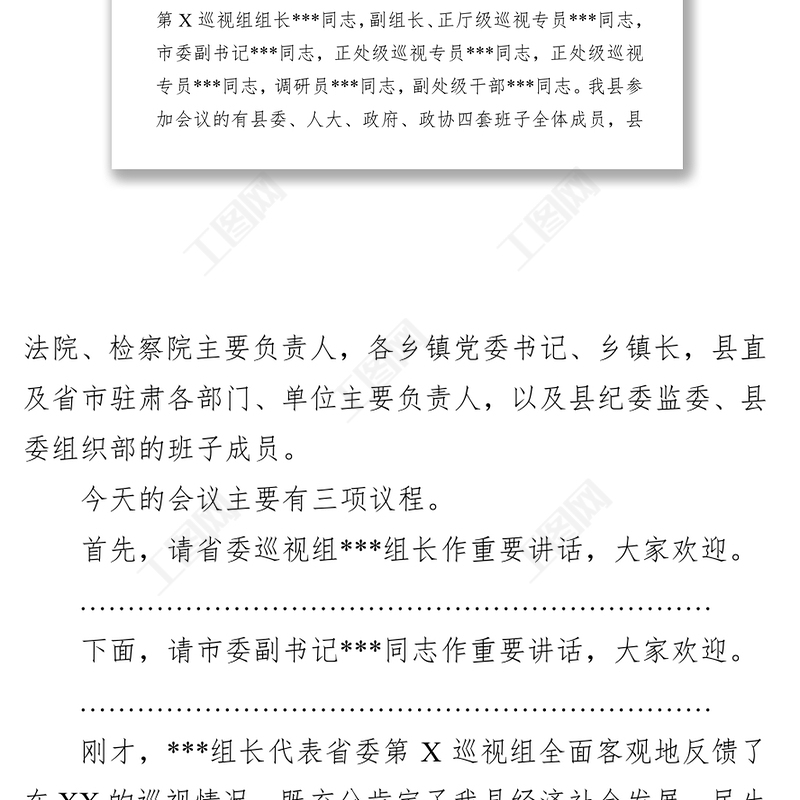 在省委第X巡視組巡視XX縣情況反饋會(huì)議主持詞及表態(tài)發(fā)言,會(huì)議主持詞,公文范例,領(lǐng)導(dǎo)述職報(bào)告,機(jī)關(guān)公文寫(xiě)作 Array