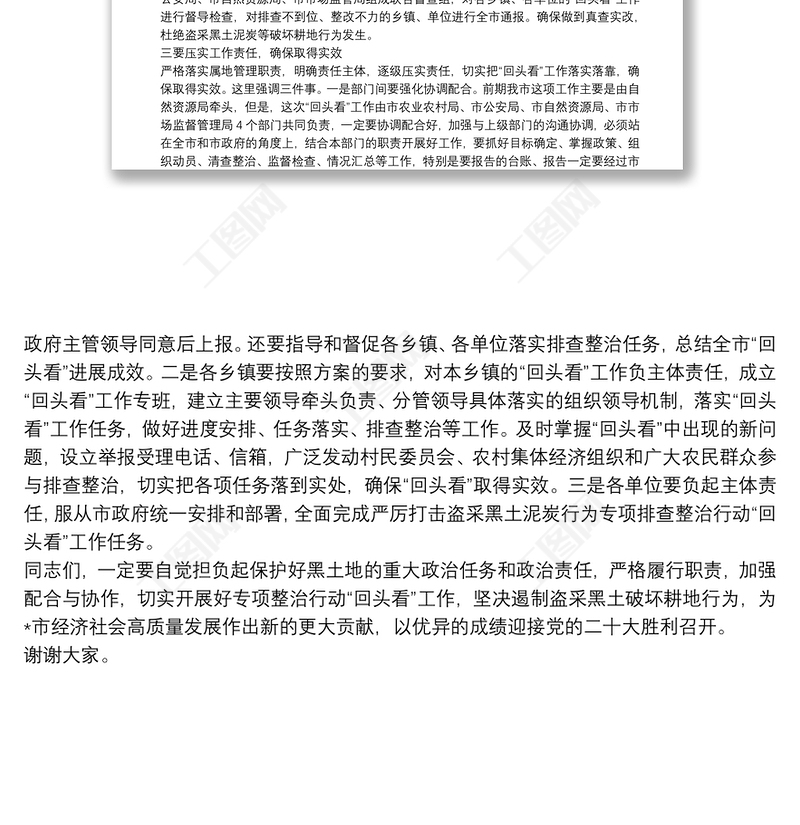 > 領(lǐng)導(dǎo)講話 > 在全市嚴(yán)厲打擊盜采黑土泥炭行為專項(xiàng)排查整治行動“回頭看”工作會議上的講話.DOCX 【圖片、文字、動畫均可編輯】