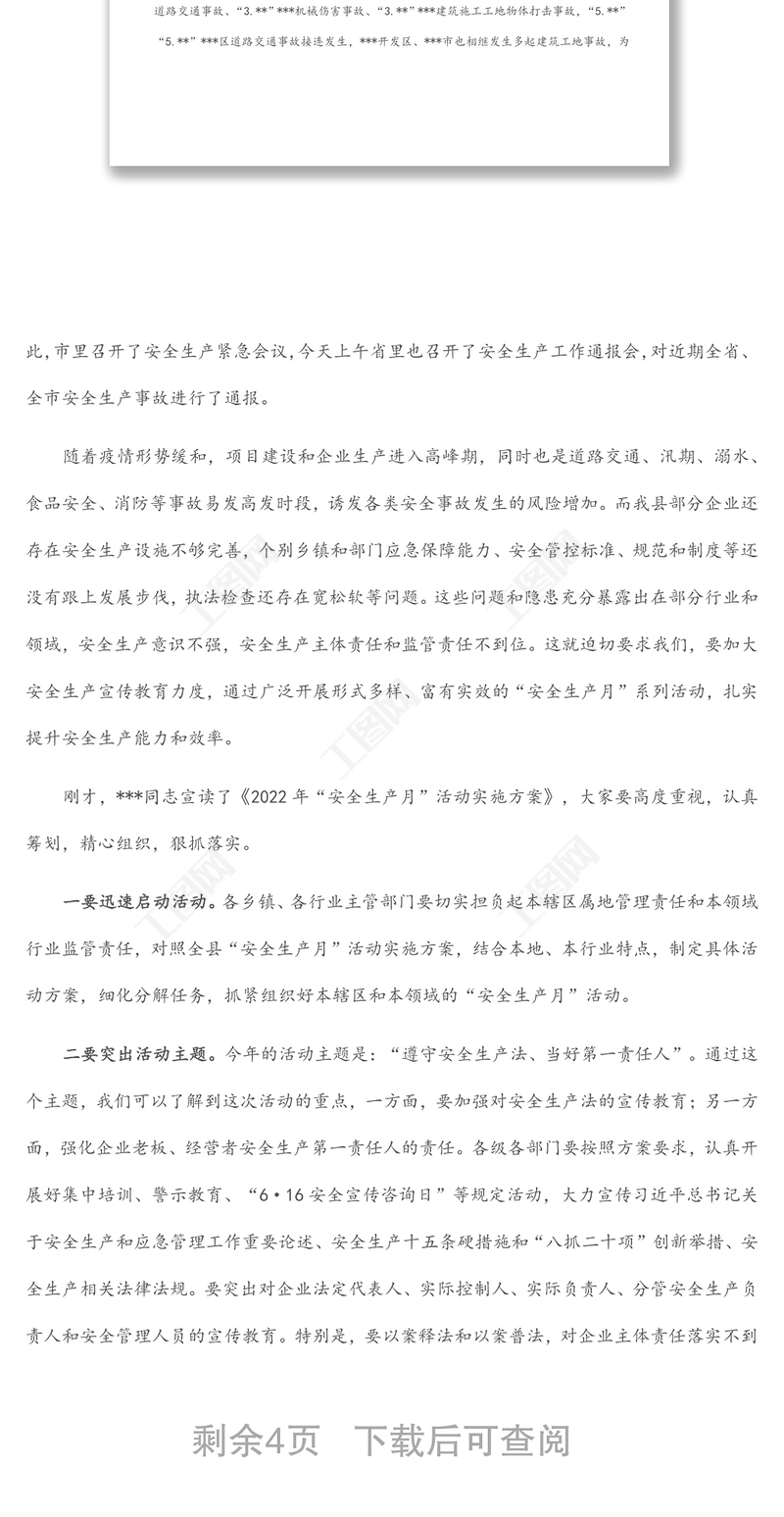 工圖網(wǎng)提供在第21個(gè)“安全生產(chǎn)月”活動(dòng)啟動(dòng)儀式暨全縣安全生產(chǎn)工作會(huì)議上的講話供會(huì)員免費(fèi)下載。更多精彩黨課PPT素材,盡在工圖網(wǎng)。