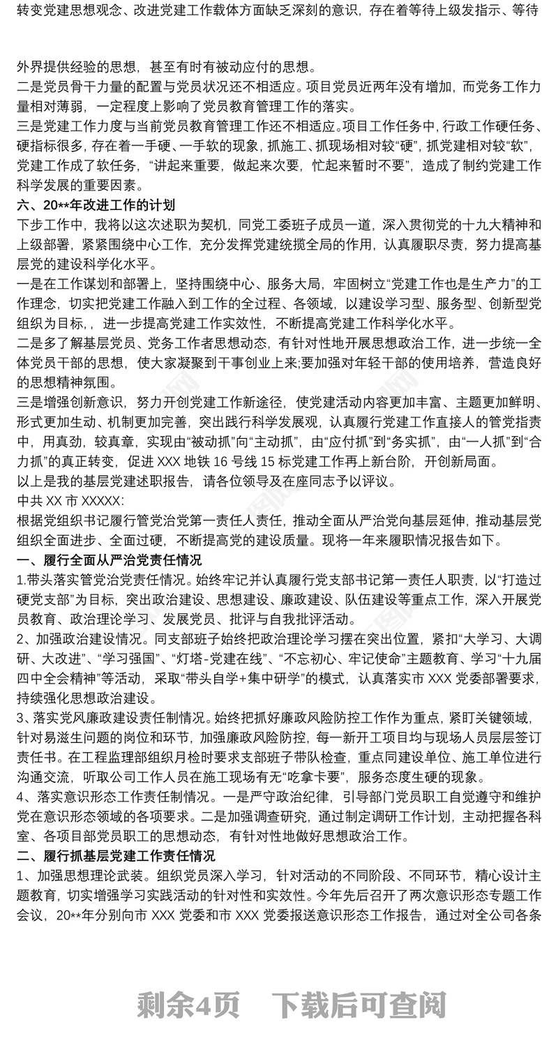 20xx年度黨支部書記抓基層黨建工作述職述廉報告 Array
