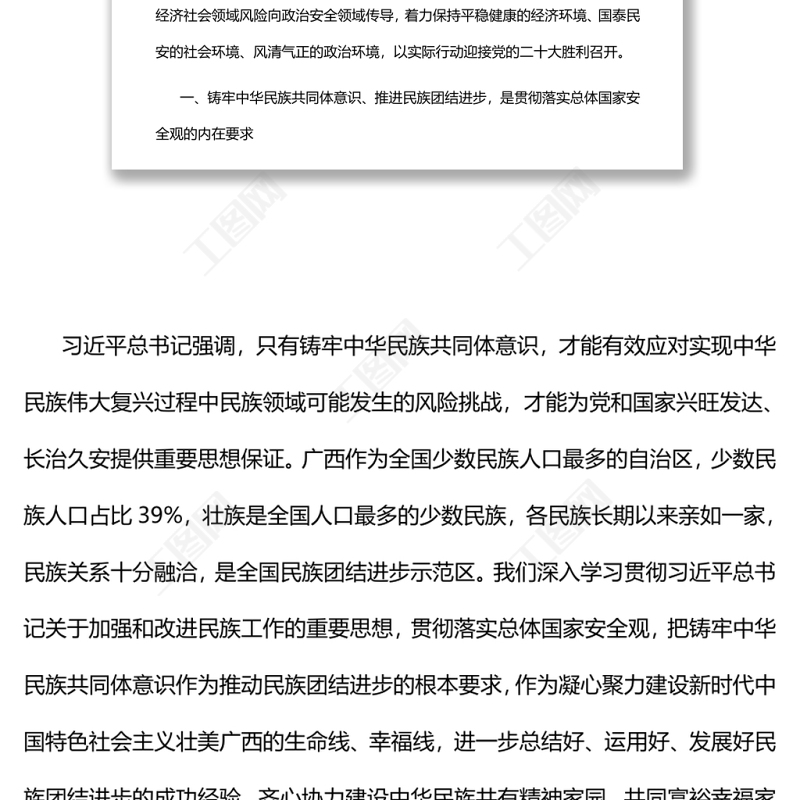 工圖網(wǎng)提供在鞏固發(fā)展民族團(tuán)結(jié)社會(huì)穩(wěn)定邊疆安寧上彰顯新?lián)?dāng)黨員干部深入學(xué)習(xí)總體國(guó)家安全觀供會(huì)員免費(fèi)下載。更多精彩黨課PPT素材,盡在工圖網(wǎng)。