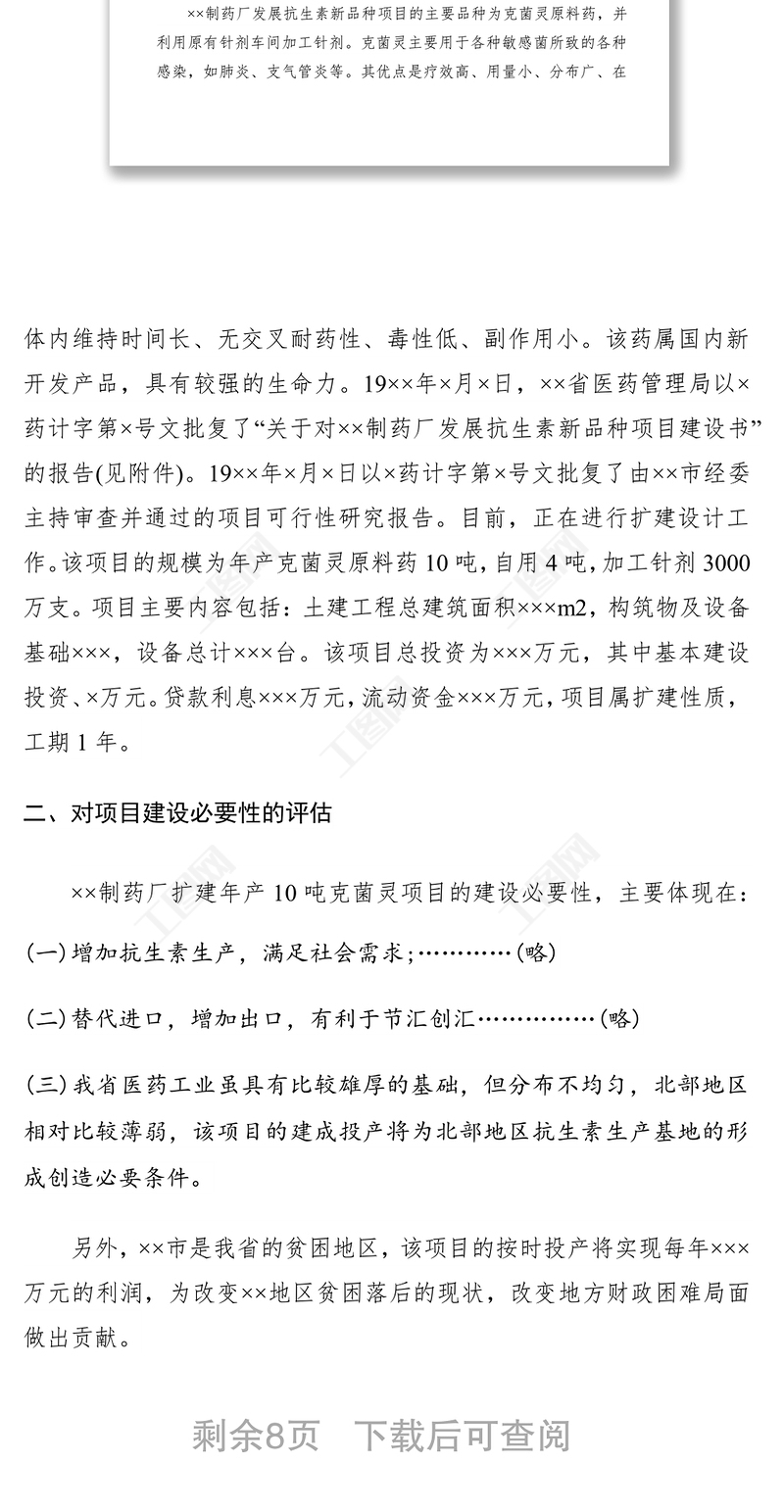 > 報(bào)告 > 2021xx制藥廠發(fā)展抗生素新品種項(xiàng)目評(píng)估報(bào)告.DOCX 【圖片、文字、動(dòng)畫(huà)均可編輯】