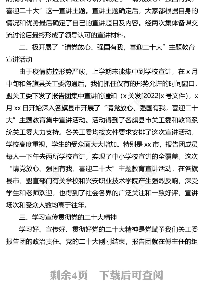 2021市直機(jī)關(guān)工委黨史學(xué)習(xí)教育總結(jié)2022年村級(jí)新時(shí)代文明實(shí)踐站工作計(jì)劃2022年退役軍人服務(wù)中心個(gè)人工作總結(jié)2021青年理論小組黨史學(xué)習(xí)教育工作總結(jié)2022關(guān)心下一代教育基地授牌儀式致辭2022年公安民警個(gè)人季度考核工作小結(jié)2022年中小學(xué)黨支部換屆選舉工作報(bào)告2021年重慶學(xué)校黨史學(xué)習(xí)教育工作總結(jié)衛(wèi)健委疫情防控2022年第二季度意識(shí)形態(tài)領(lǐng)域工作情況報(bào)告2022黨群服務(wù)中心副主任崗位職責(zé)2022年村委會(huì)副主任對(duì)照檢查材料2022年廣西統(tǒng)一戰(zhàn)線(xiàn)領(lǐng)導(dǎo)小組工作會(huì)議講話(huà)稿2022年鄉(xiāng)村振興第一季度人才工作匯報(bào)人大副主任2022年度民主生活會(huì)對(duì)照檢查材2022在落實(shí)全面從嚴(yán)治黨主體責(zé)任工作會(huì)議上的講話(huà)