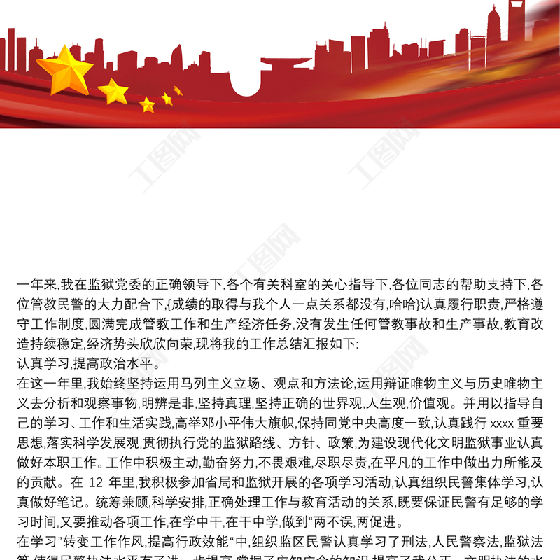 工圖網(wǎng)提供監(jiān)區(qū)長(zhǎng)述職述廉報(bào)告供會(huì)員免費(fèi)下載。更多精彩黨課PPT素材,盡在工圖網(wǎng)。