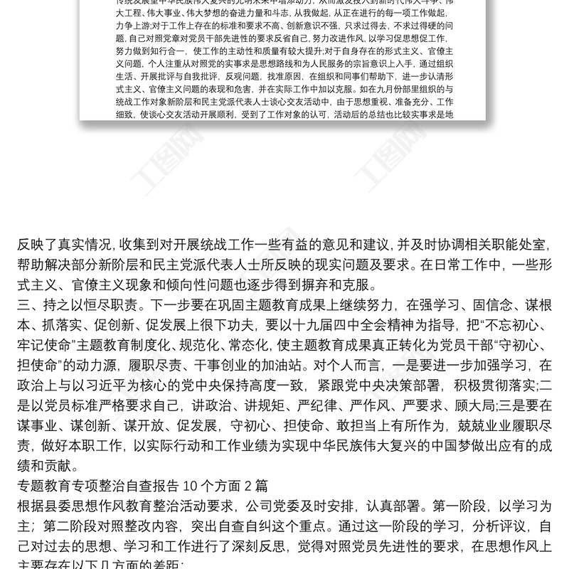 工圖網(wǎng)提供專題教育專項整治自查報告10個方面3篇供會員免費(fèi)下載。更多精彩黨課PPT素材,盡在工圖網(wǎng)。