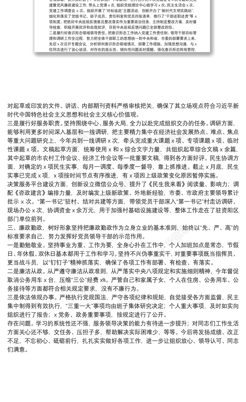 20**年度班子成員個(gè)人述職述德述廉報(bào)告