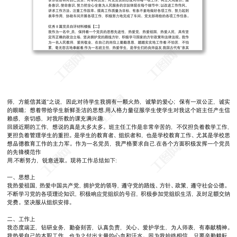 工圖網(wǎng)提供優(yōu)秀8篇黨員自評(píng)材料模板供會(huì)員免費(fèi)下載。更多精彩黨課PPT素材,盡在工圖網(wǎng)。