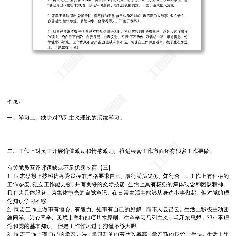 工圖網(wǎng)提供有關(guān)黨員互評評語缺點(diǎn)不足優(yōu)秀5篇供會(huì)員免費(fèi)下載。更多精彩黨課PPT素材,盡在工圖網(wǎng)。