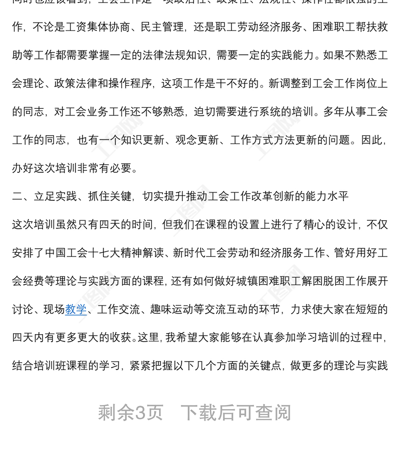 工圖網(wǎng)提供在全縣工會干部培訓(xùn)班開班式上的講話供會員免費下載。更多精彩黨課PPT素材,盡在工圖網(wǎng)。