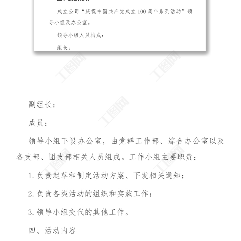 工圖網(wǎng)提供慶祝中國(guó)共產(chǎn)黨成立100周年系列活動(dòng)方案供會(huì)員免費(fèi)下載。更多精彩黨課PPT素材,盡在工圖網(wǎng)。