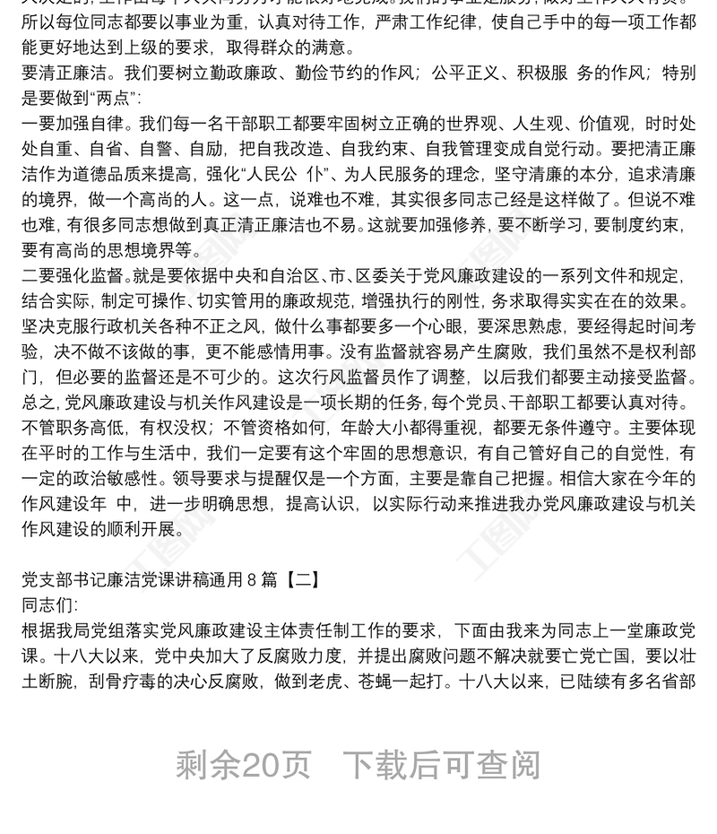 工圖網(wǎng)提供黨支部書記廉潔黨課講稿通用8篇供會(huì)員免費(fèi)下載。更多精彩黨課PPT素材,盡在工圖網(wǎng)。