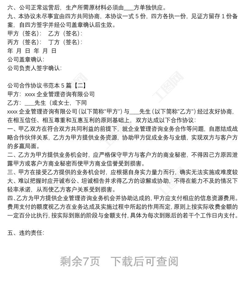 工圖網(wǎng)提供公司合作協(xié)議書(shū)范本5篇供會(huì)員免費(fèi)下載。更多精彩黨課PPT素材,盡在工圖網(wǎng)。