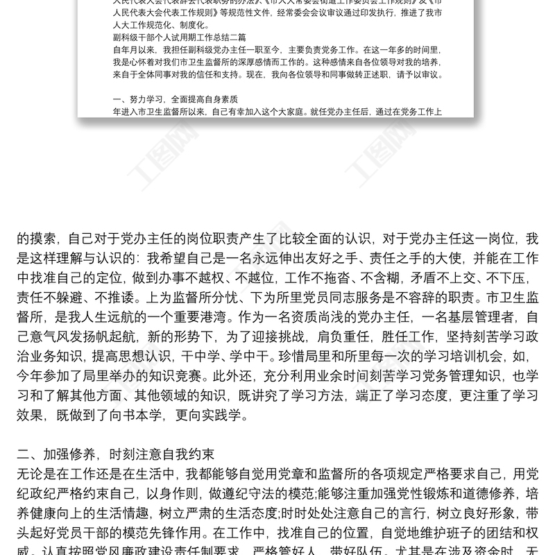 工圖網(wǎng)提供副科級干部個人試用期工作總結三篇供會員免費下載。更多精彩黨課PPT素材,盡在工圖網(wǎng)。