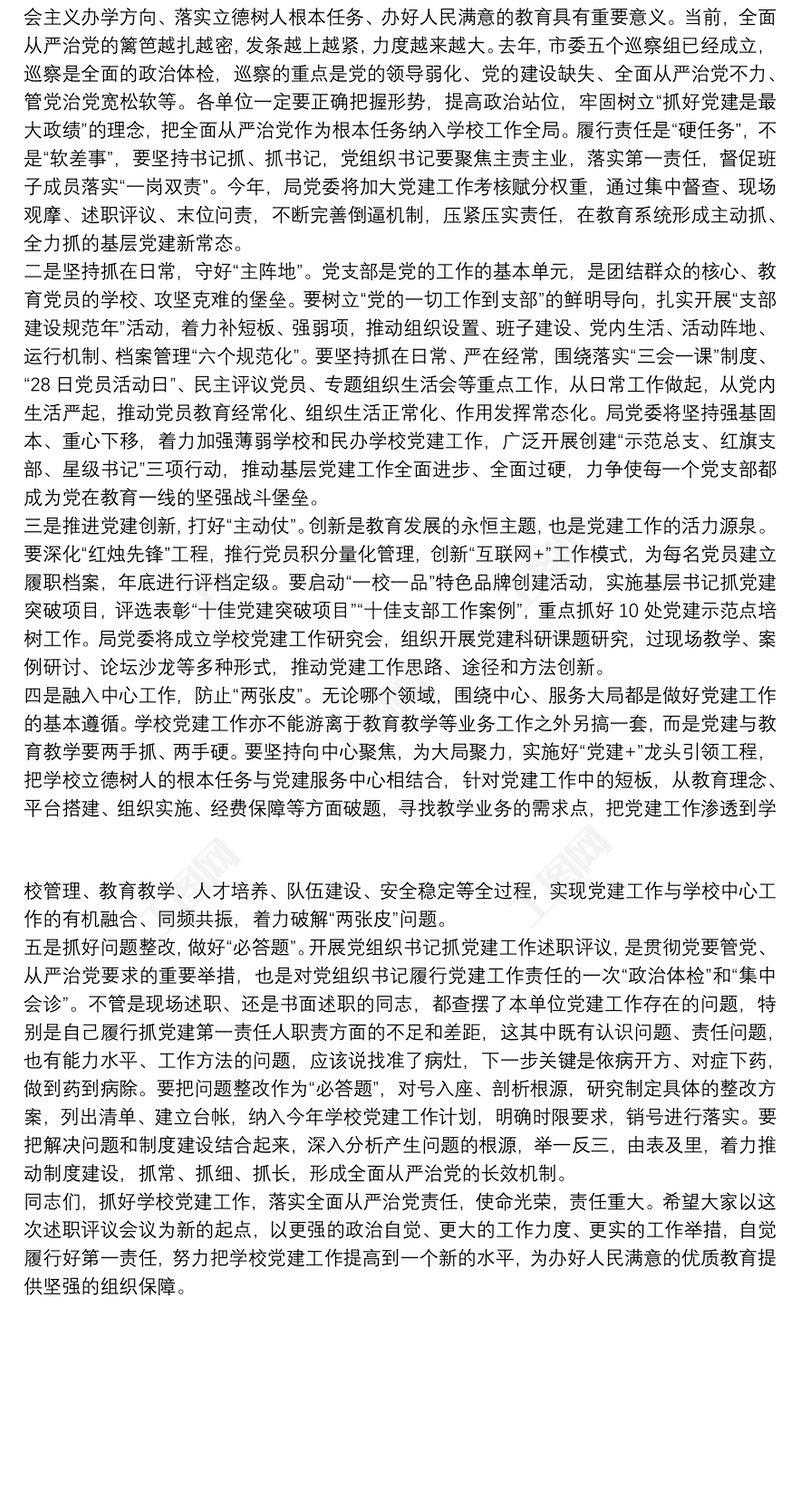 在全縣抓基層黨建工作年度述職評議會上的點評講話包含