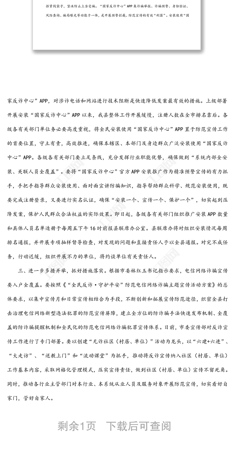 > 領(lǐng)導(dǎo)講話 > 在全縣“國(guó)家反詐中心”APP安裝使用推進(jìn)工作會(huì)議上的講話.DOCX 【圖片、文字、動(dòng)畫(huà)均可編輯】