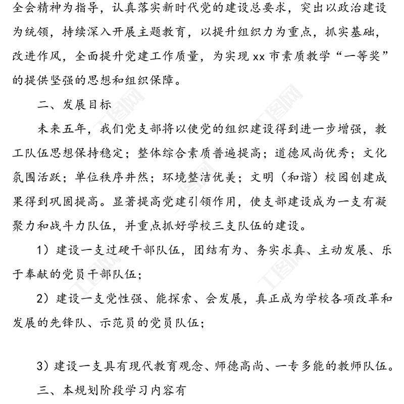 工圖網(wǎng)提供xx中學(xué)黨支部2021-2025黨建工作規(guī)劃范文供會員免費下載。更多精彩黨課PPT素材,盡在工圖網(wǎng)。