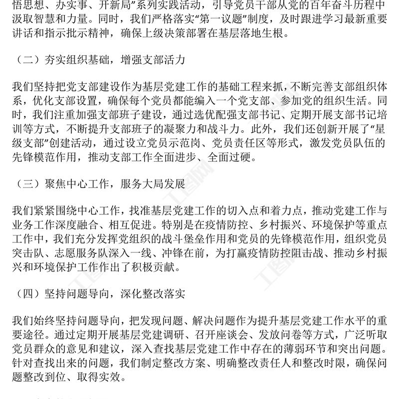 2024年基層黨組織書記抓基層黨建工作述職報(bào)告范文