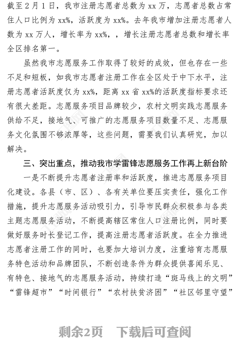 工圖網(wǎng)提供全市學(xué)雷鋒志愿服務(wù)工作會議講話供會員免費(fèi)下載。更多精彩黨課PPT素材,盡在工圖網(wǎng)。