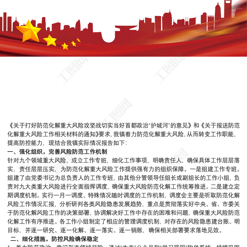 工圖網(wǎng)提供2020關(guān)于防范化解重大風險工作開展情況的報告3篇供會員免費下載。更多精彩黨課PPT素材,盡在工圖網(wǎng)。
